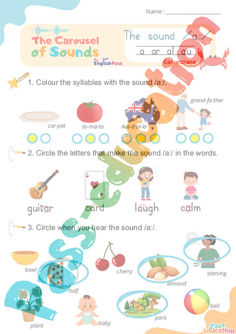 Correction a a, ar, al, au – Phonologie anglaise – Carousel of Sounds pdf