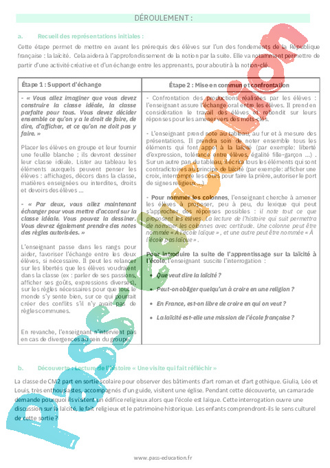 Fiche de préparation – À l’école laïque : 7eme Harmos – EMC Education morale et civique.