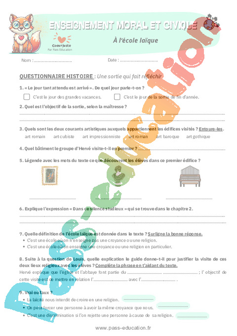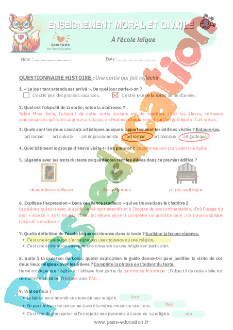 3 Correction Compréhension Histoire – À l’école laïque : 7eme Harmos pdf