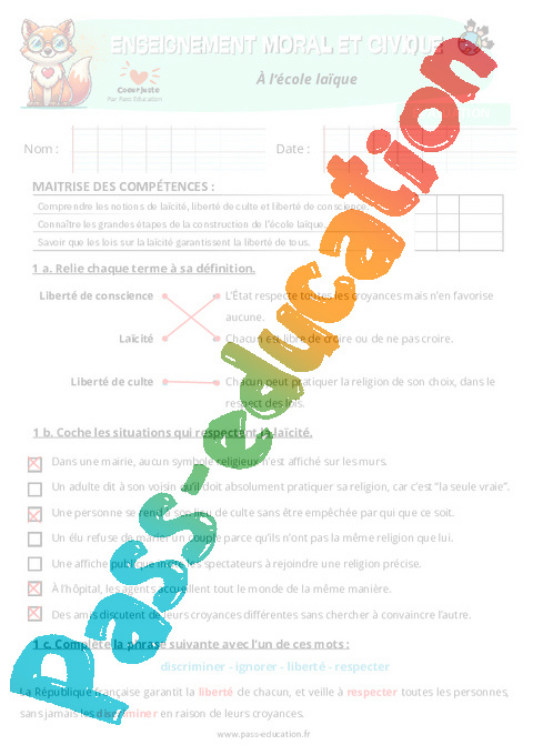 – Comprendre que la laïcité protège chacun, garantit l’égalité et favorise la coopération.