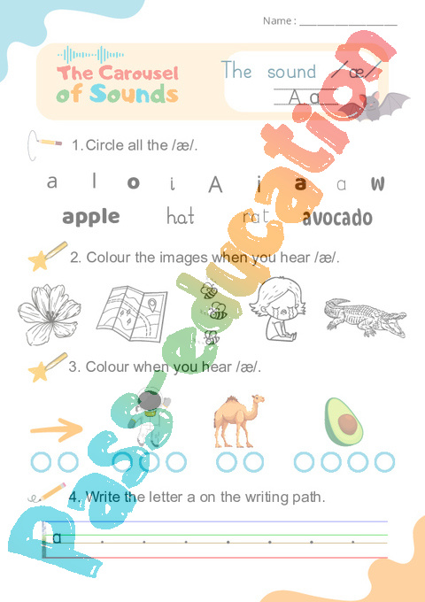 /æ/ a – simple – Carousel of Sounds – Vidéo interactive + – Fiches + Poster : 2ème Harmos, 3eme, 4ème, 5ème, 6ème, 7ème Harmos