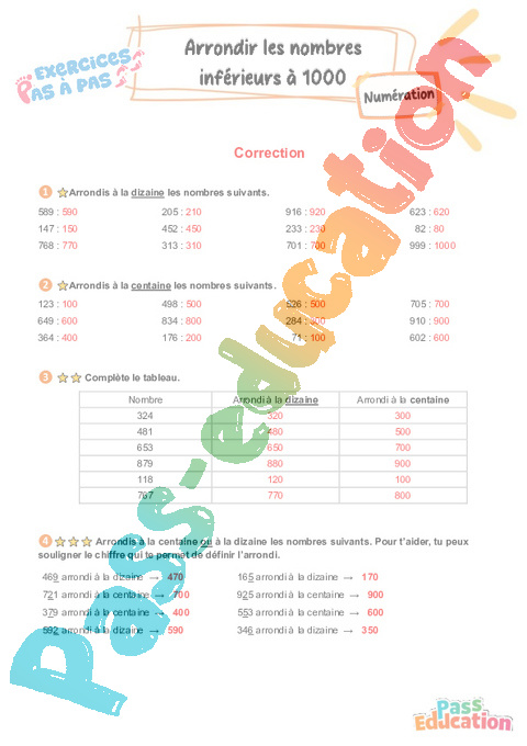 Correction Arrondir les nombres inférieurs à 1 000 : 5eme Harmos – Exercices Pas à Pas pdf