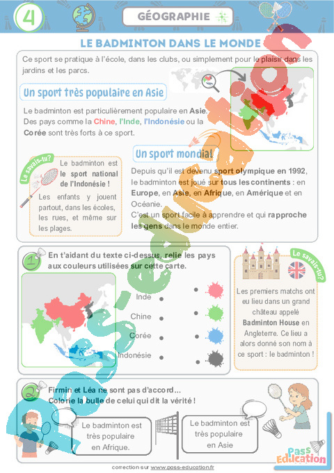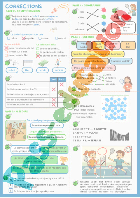 Correction Badminton – Cahier de vacances : 4eme, 5eme Harmos pdf