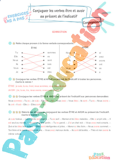 Conjuguer les verbes être et avoir au présent de l’indicatif : 7eme Harmos – Exercices Pas à Pas rtf