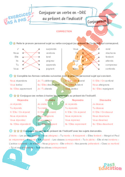Conjuguer les verbes en -dre au présent de l’indicatif : 5eme Harmos – Exercices Pas à Pas rtf