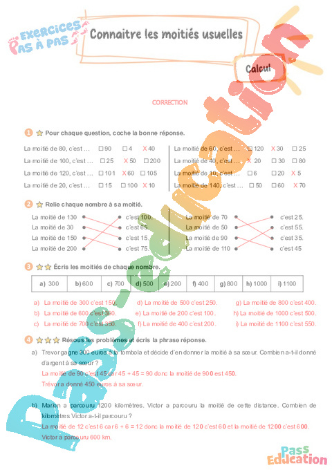 Correction Connaître les moitiés usuelles : 5eme Harmos – Exercices Pas à Pas pdf