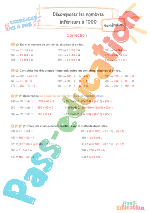 Correction Décomposer les nombres inférieurs à 1000 : 5eme Harmos – Exercices Pas à Pas rtf
