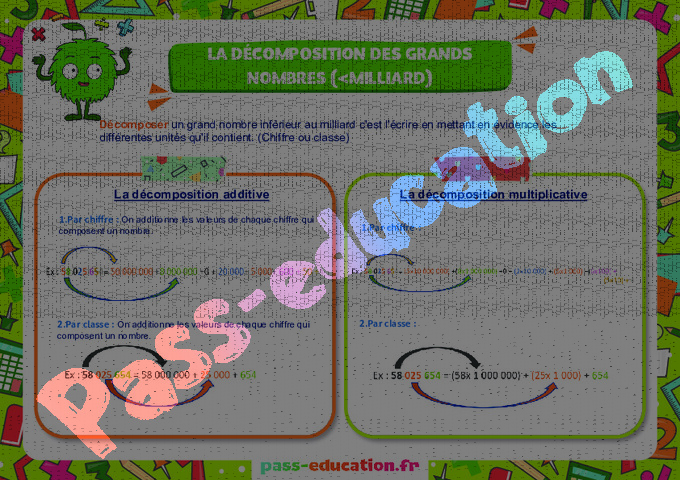 Décomposition des grands nombres – Affiche : 3eme, 6ème, 7ème Harmos – PDF à imprimer