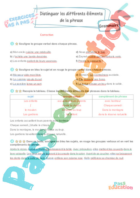 Distinguer les différents éléments de la phrase : 5eme Harmos – Mémo + Exercices Pas à Pas rtf