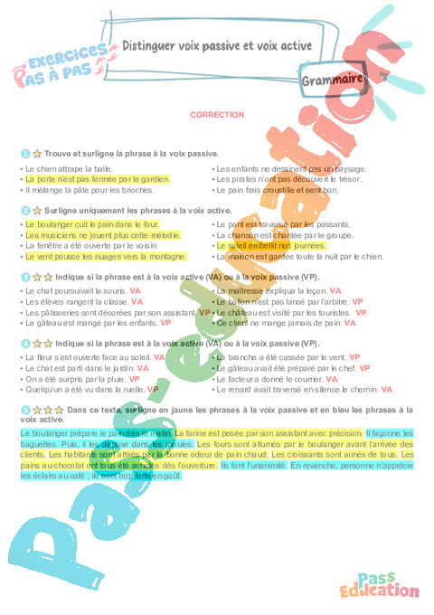 Correction Distinguer voix passive et voix active : 7eme Harmos – Exercices Pas à Pas pdf