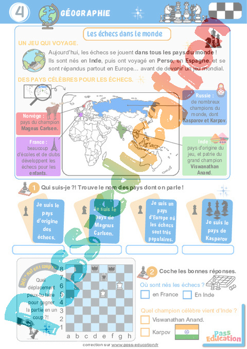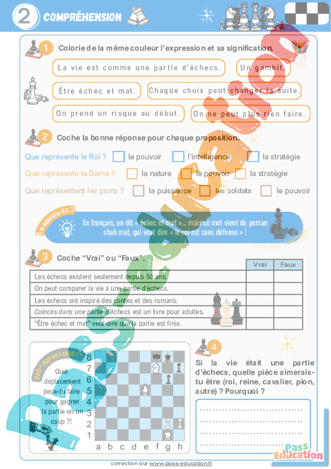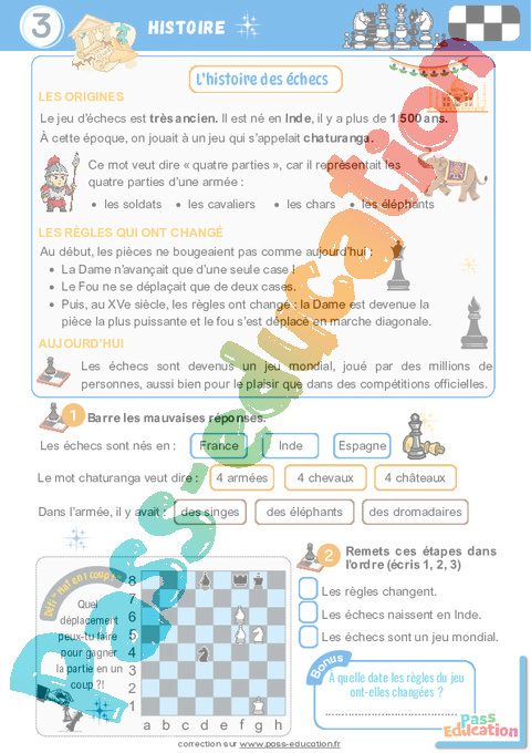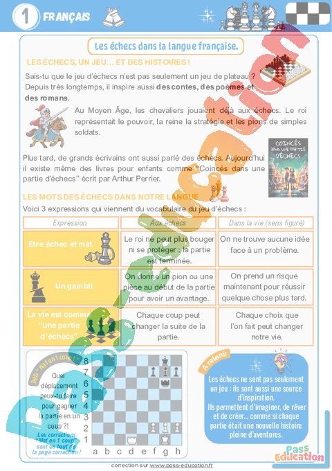 Fichier d’activités sur les échecs pour la 4eme, 5eme Harmos .