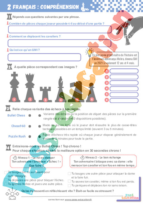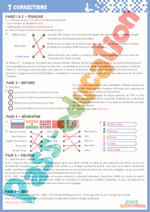 Correction Échecs : 9eme, 10eme Harmos Cahier de vacances pdf