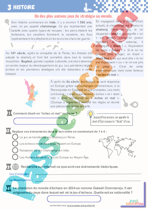 Fichier d’activités sur les échecs pour la 9eme, 10eme Harmos et la 9eme, 10eme Harmos .