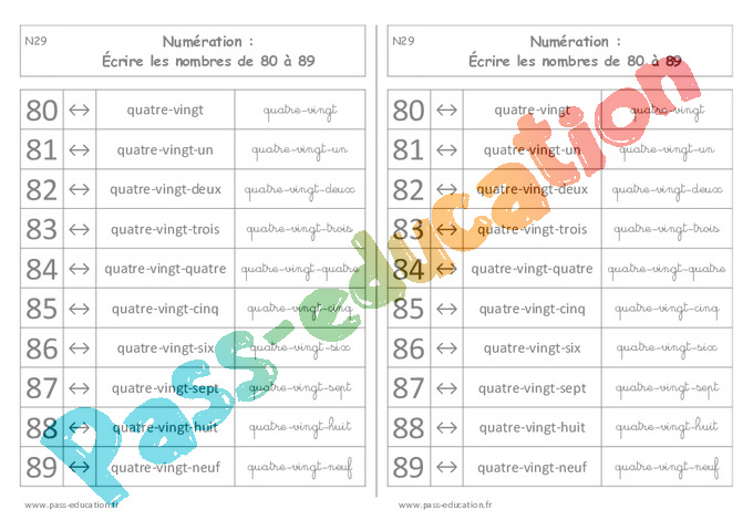 Ecrire les nombres de 80 à 89 – Cours, Leçon : 3eme Harmos – PDF à imprimer