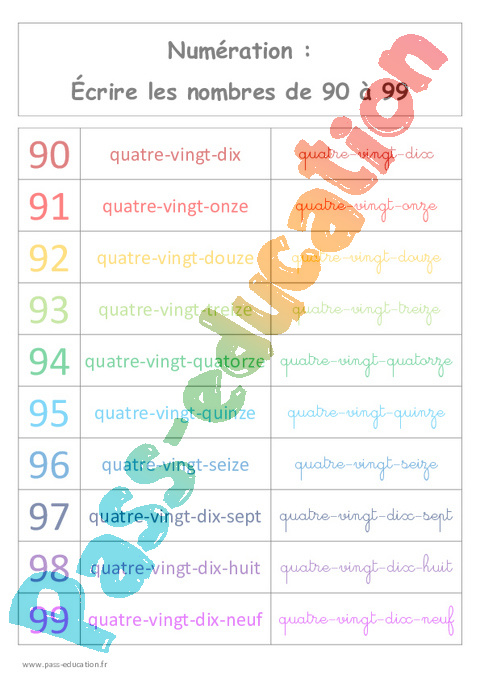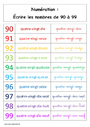 Ecrire les nombres de 90 à 99 – Affiche pour la classe : 3eme Harmos rtf