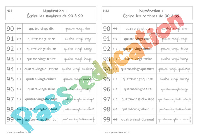 Ecrire les nombres de 90 à 99 – Cours, Leçon : 3eme Harmos – PDF à imprimer