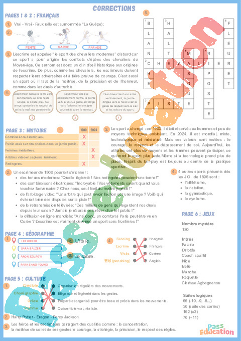 Correction Escrime – Cahier de vacances : 9eme, 10eme, 11eme Harmos pdf