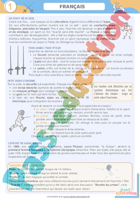 Cahier de vacances à imprimer : Escrime