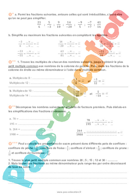Simplifie au maximum les fractions suivantes en complétant les égalités.