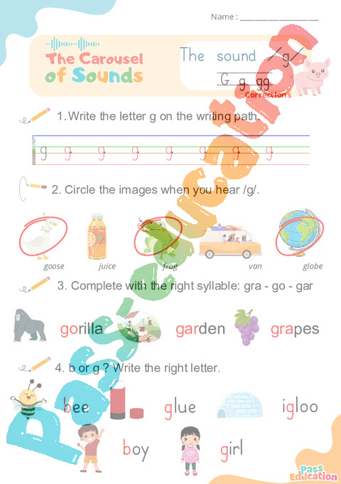 Carousel of Sounds : 2eme Harmos 3eme, 4eme, 5eme, 6eme, 7eme Harmos – Vidéo interactive + Fiche sur : /g/ .