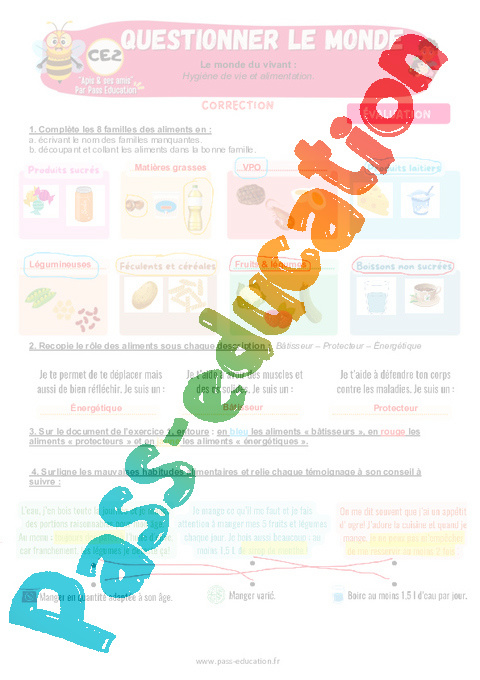 6.1 Correction Hygiène de vie et alimentation : 5eme Harmos pdf