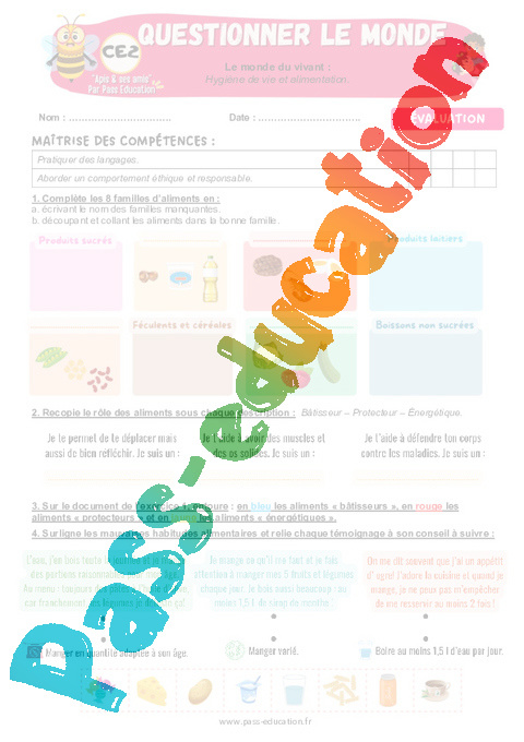 Evaluation – Hygiène de vie et alimentation en 5eme Harmos – Apis & ses amis : Questionner le monde.