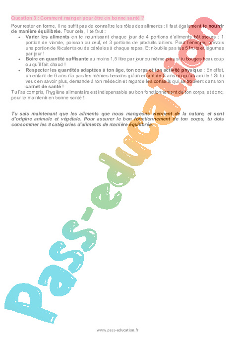 6.1 Correction Hygiène de vie et alimentation : 3eme Harmos pdf