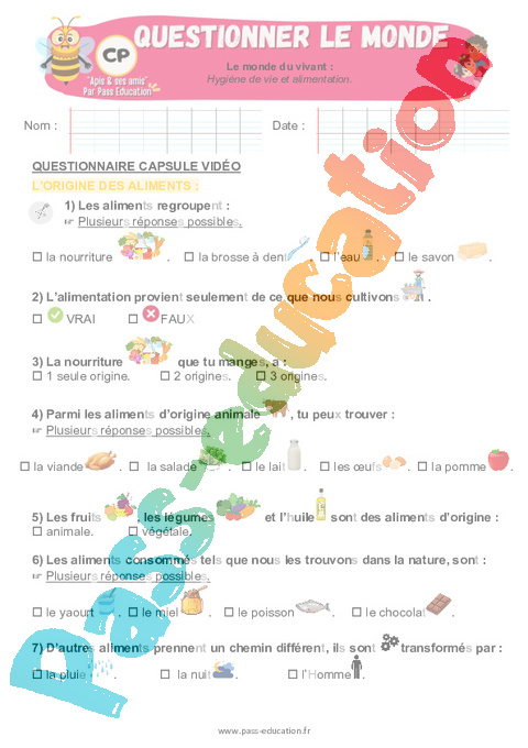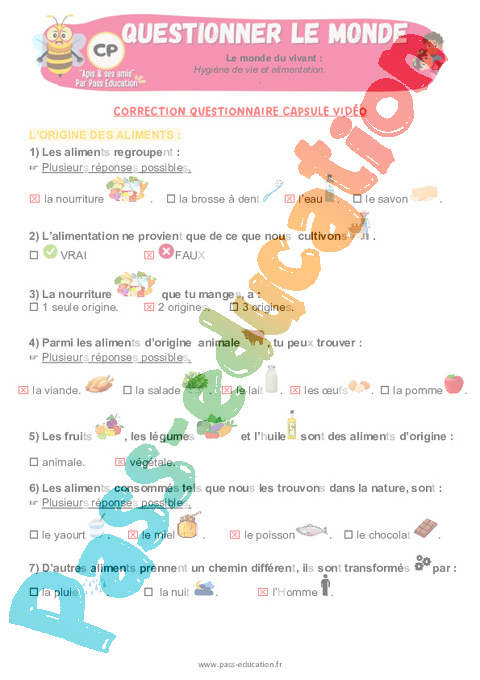 3.1 Correction QCM capsule vidéo Hygiène de vie et alimentation : 3eme Harmos pdf