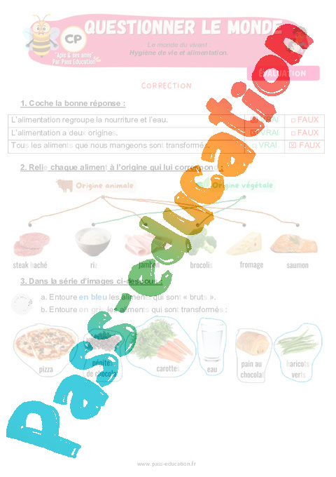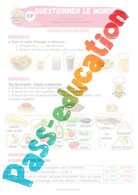4.1 Correction Fiche Elève Hygiène de vie et alimentation : 3eme Harmos pdf