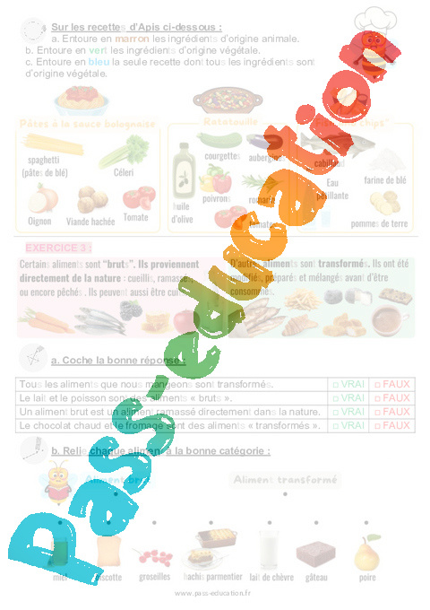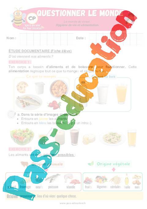 - Savoir que les aliments sont d’origine animale ou végétale.