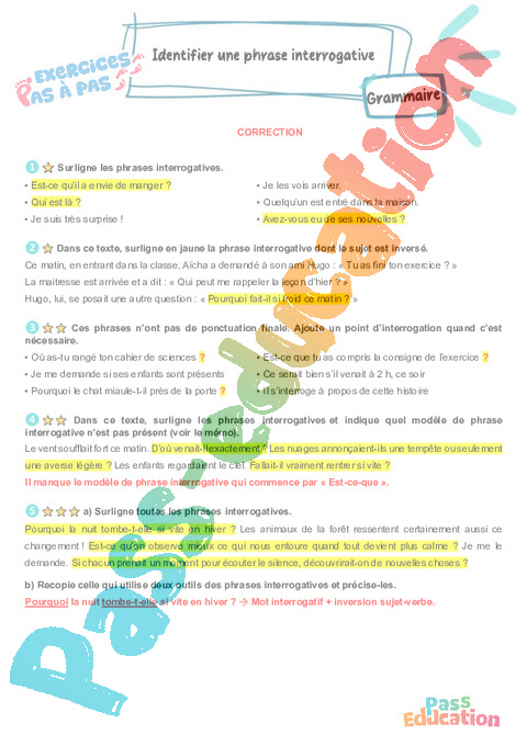 Correction Identifier une phrase interrogative : 7eme Harmos – Exercices Pas à Pas pdf