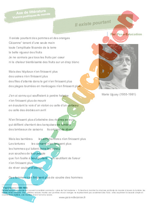 Littérature Il existe pourtant (Marie Uguay) : 11eme Harmos pdf