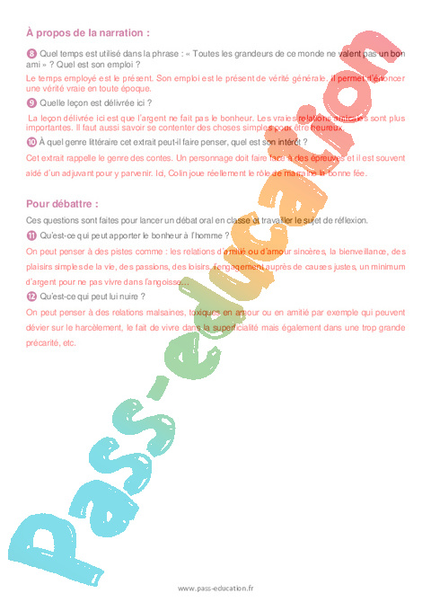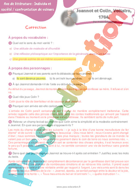 Correction Questionnaire : 10eme Harmos Jeannot et Colin (Voltaire) pdf