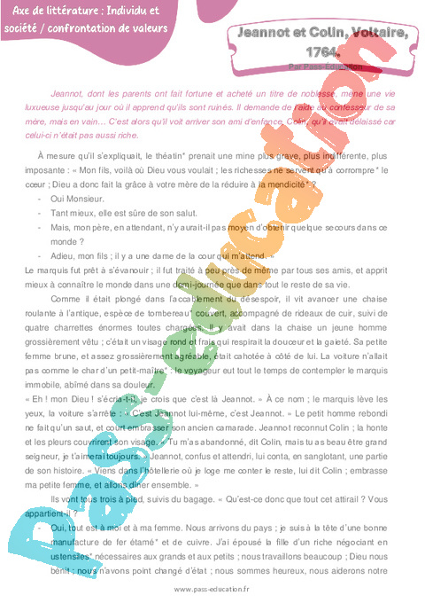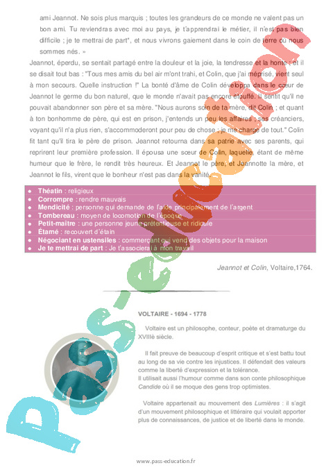 Littérature : 10eme Harmos Jeannot et Colin (Voltaire) pdf