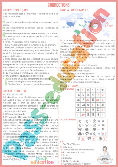 Correction Karaté – Cahier de vacances : 9eme, 10eme, 11eme Harmos pdf