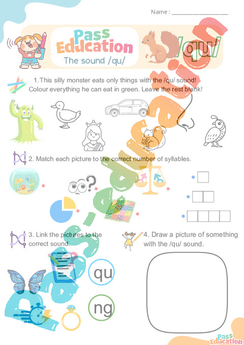 qu Phonics worksheets pdf
