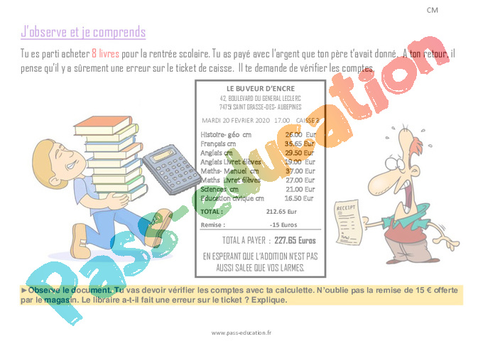 1/ Je sais vérifier le montant d’un ticket de caisse.