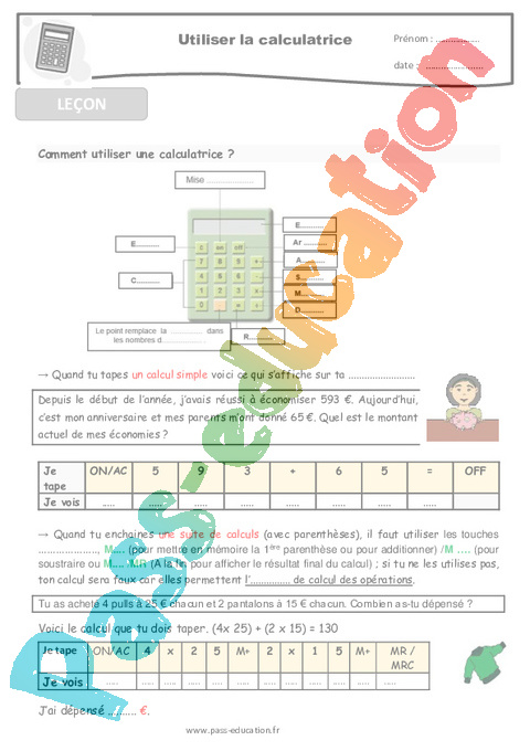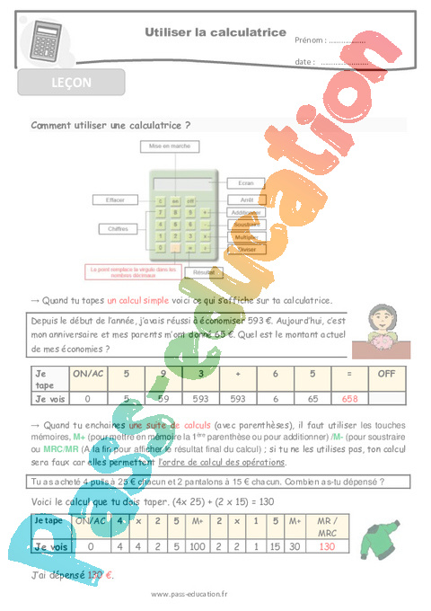 Leçon – La calculatrice – CM – Décrochage scolaire pdf