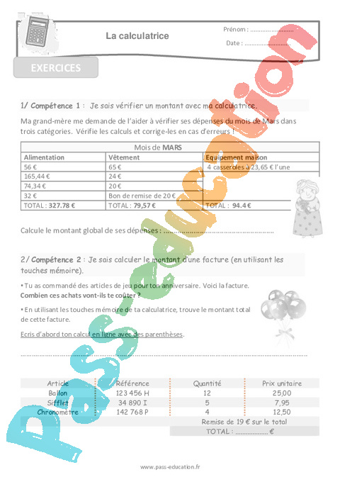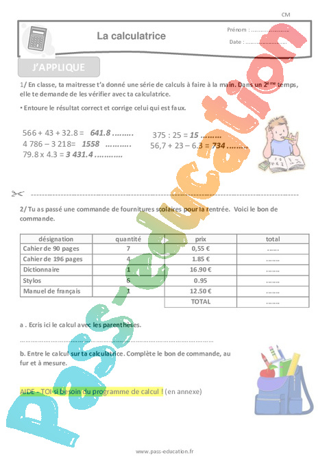 Entrainement – La calculatrice – CM – Décrochage scolaire pdf