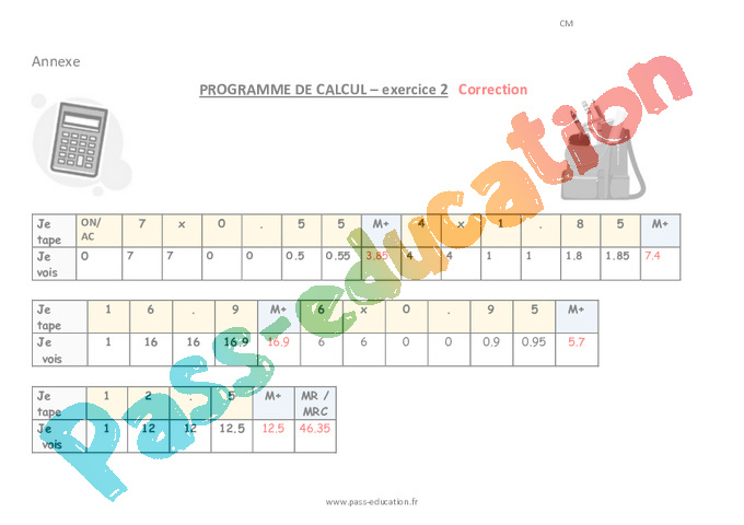 Entrainement – La calculatrice – CM – Décrochage scolaire – Correction pdf