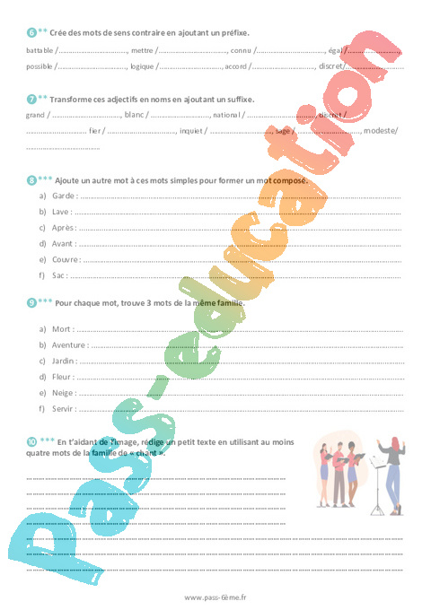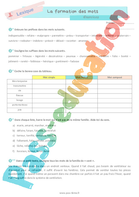 Correction Exercices 6ème La formation des mots famille de mots pdf