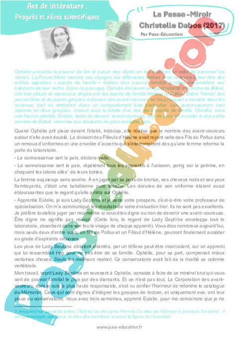 Littérature La Passe-Miroir (Christelle Dabos) 2017 : 11eme Harmos pdf