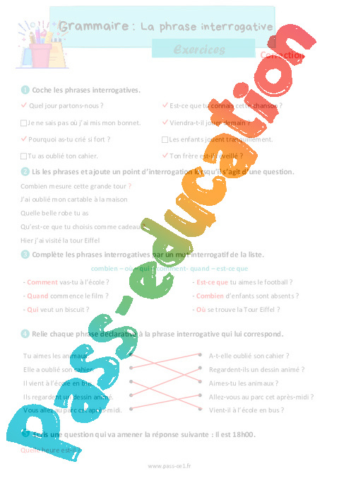 Correction Exercices La phrase interrogative : 4eme Harmos pdf
