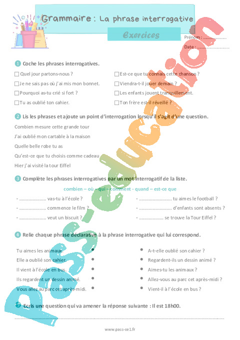 Exercices La phrase interrogative : 4eme Harmos pdf