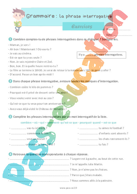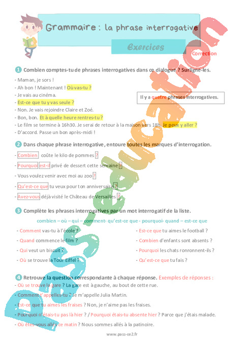 Correction Exercices La phrase interrogative : 5eme Harmos pdf
