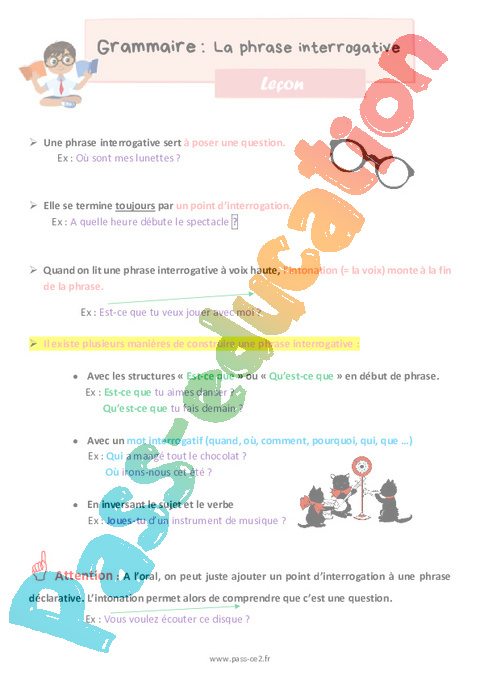 Leçon de grammaire pour la 5eme Harmos sur la phrase interrogative.