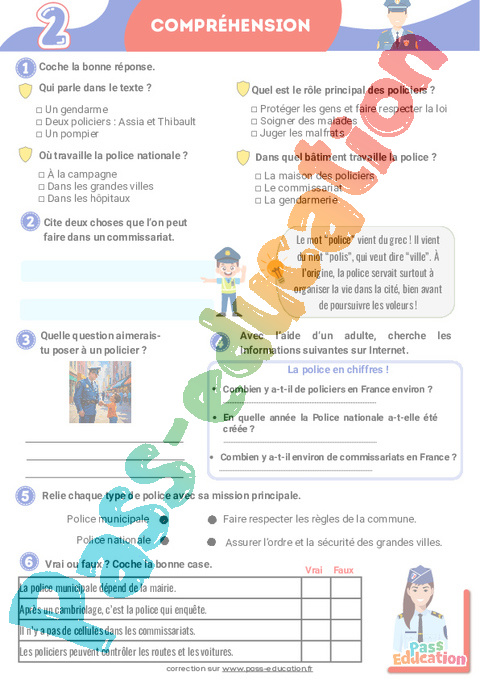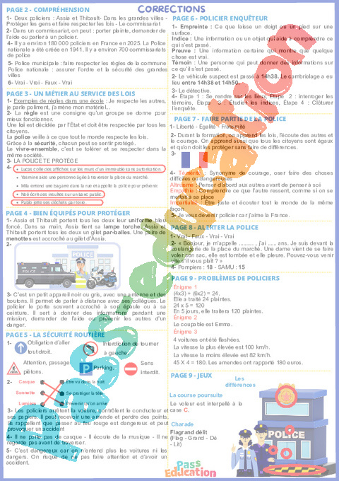 Correction La police – Cahier de vacances : 6eme, 7eme, 8eme Harmos rtf