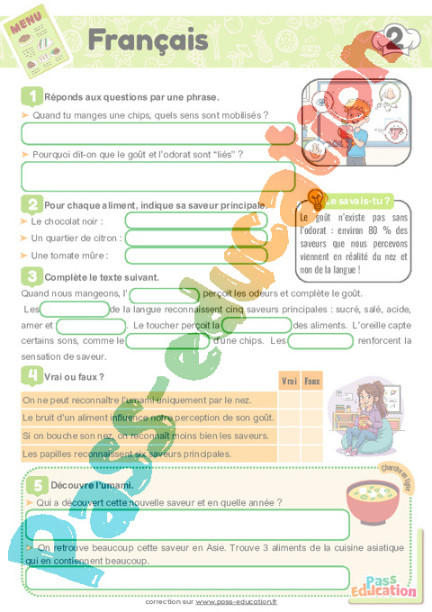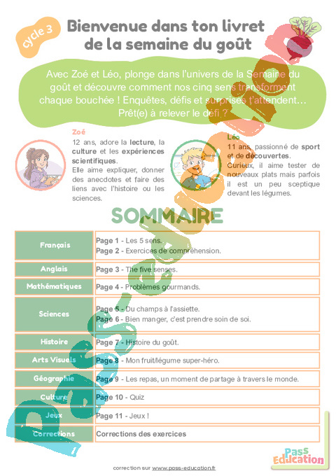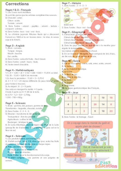 Correction La semaine du goût : 6eme, 7eme Harmos – Fichier d’activités pdf