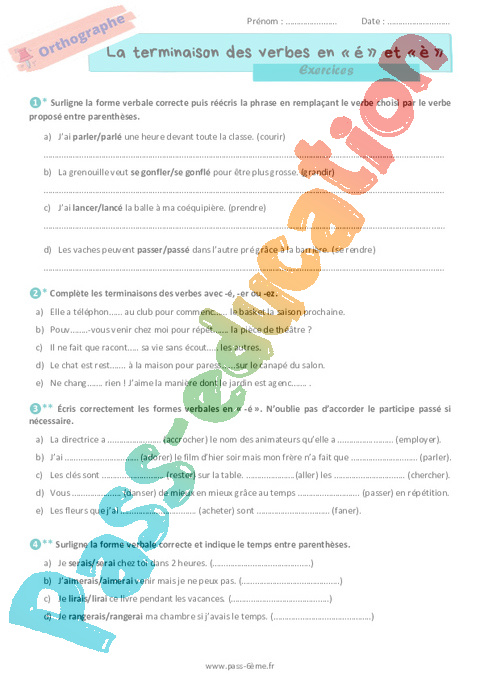 Exercices 6ème La fin des verbes en « é » et « è » pdf