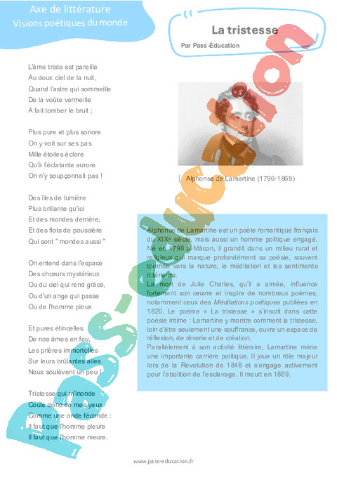Littérature La tristesse (Alphonse de Lamartine) : 11eme Harmos rtf